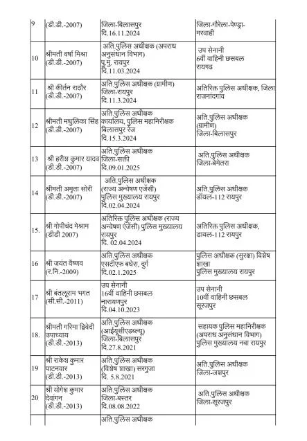रायपुर। राज्य सरकार ने पुलिस मकहमे में बड़ी सर्जरी करते हुए राज्य पुलिस सेवा के 95 अधिकारियों का तबादला किया है। गृह (पुलिस) विभाग की ओर से जारी आदेश के मुताबिक 35 अतिरिक्त पुलिस अधीक्षक और 60 डीएसपी स्तर के अफसरों को इधर से उधर किया गया है।